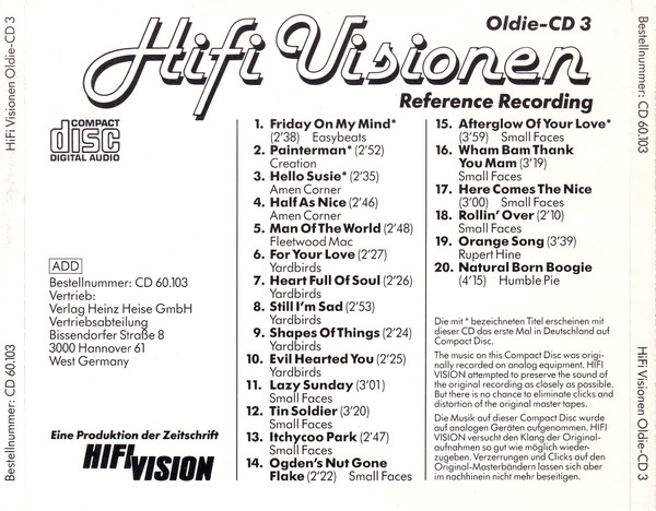 V/A incl. Rupert Hine, The Yardbirds, Small Faces, Fleetwood Mac, etc : HiFi Visionen Oldie CD 3